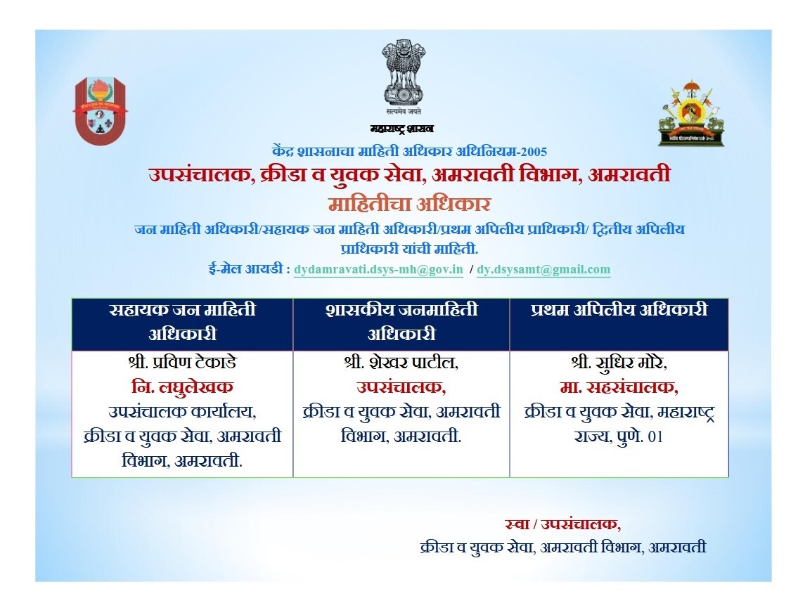 अमरावती विभागाच्या क्रीडा विभागामार्फत आपले स्वागत आहे.